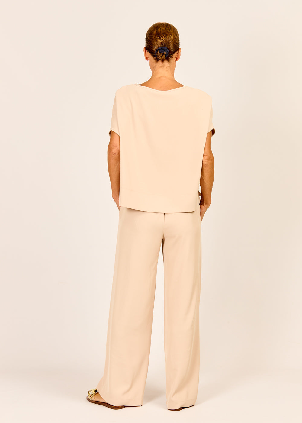 Diese edle Pantalone in der Farbe Sand ist die Definition von stilvollem Komfort und verleiht jedem Outfit eine mühelose Eleganz. Ihr fließender Schnitt und das hochwertige Material sorgen für eine schmeichelhafte Silhouette und ein unglaublich angenehmes Tragegefühl, ideal für lange Tage. Ob lässig kombiniert oder chic gestylt, diese Hose ist ein vielseitiges Essential, das in keiner Garderobe fehlen sollte.
