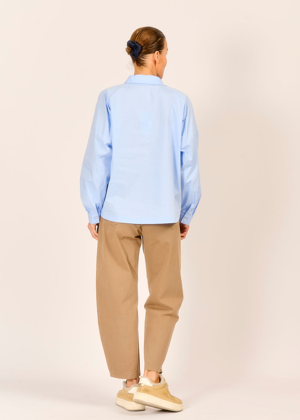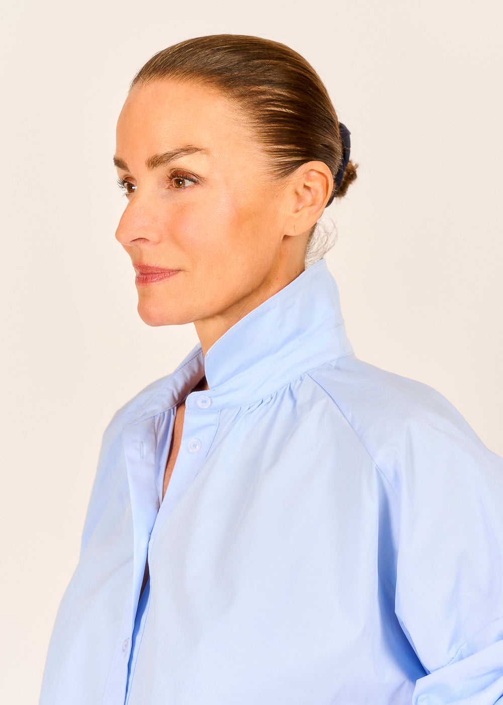 Die lässige Bluse besticht durch ihre moderne Paper-Touch-Ware, die nicht nur ein angenehmes Tragegefühl vermittelt, sondern auch für eine coole, strukturierte Optik sorgt. Besonders charmant ist das Design am Kragen, wo der Stoff raffiniert in feine Falten gelegt ist und der Bluse einen schicken, voluminösen Akzent verleiht. Mit ihrem entspannten Schnitt ist sie das perfekte Key-Piece für einen unkomplizierten, aber stilvollen Look, der sich mühelos kombinieren lässt.