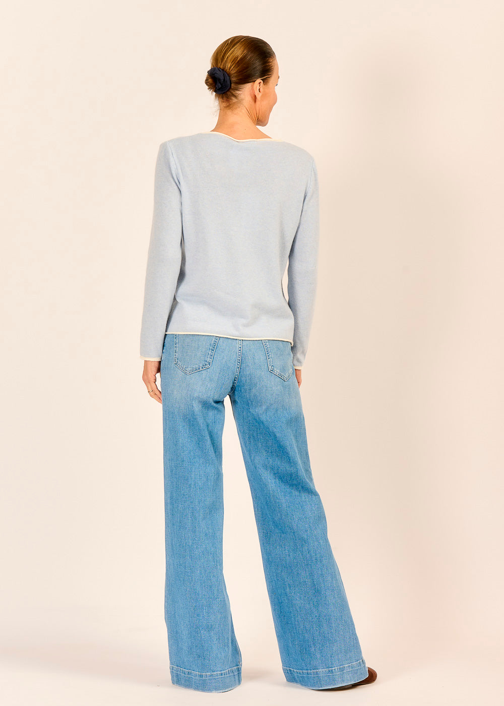 Die helle Marlene Jeans sorgt durch ihr weites Bein und den breiten Saum für eine moderne Silhouette und hohen Tragekomfort. Ob lässig kombiniert mit Frühlingsstrick oder elegant mit Bluse – dein Look wirkt mühelos stilsicher.